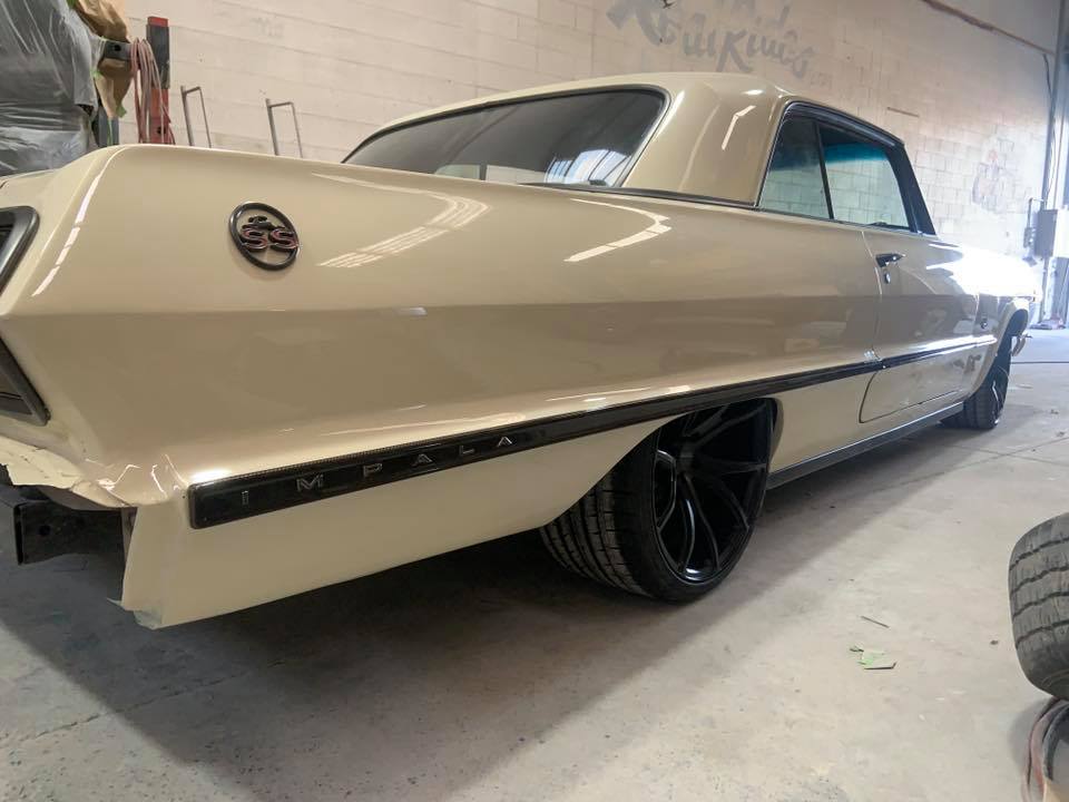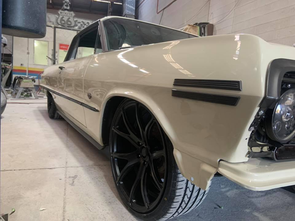 Today we also got the engine in, the taillight section done, and the ride height lowered. The interior has also been fitted. The bumpers have all been assembled ready to go on in the morning. Hopefully tomorrow’s post will be of a nearly finished looking car!